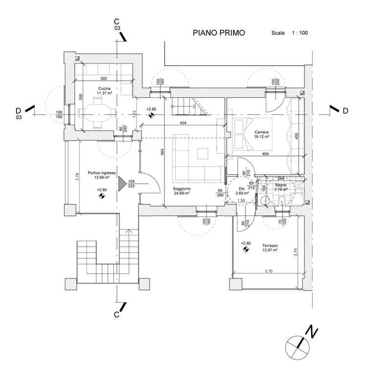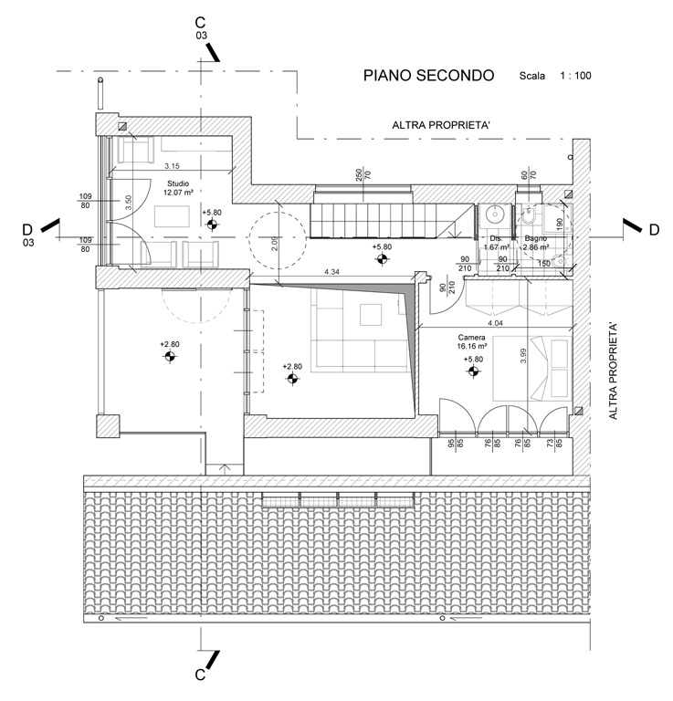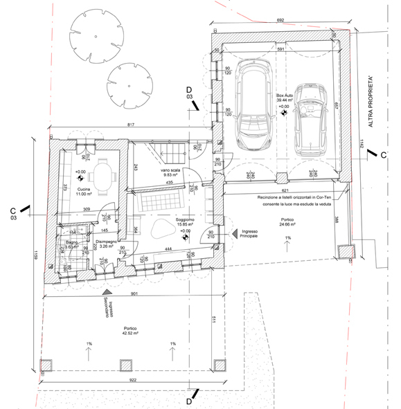 Il progetto prevedeva l'ampliamento e la sopraelevazione del fabbricato esistente.