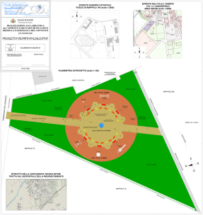 In particolare verrà risistemata l’intera area andando a creare un vialetto alberato che attraversa l’intera area dalla passeggiata del Convento fino alle gradonate in calcestruzzo a confine con il campo da calcio. Tali gradonate, oltre a fungere da chiusura dello spazio, avranno anche la funzione di sedute in occasione di piccoli spettacoli all’interno del parco.