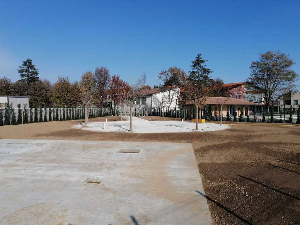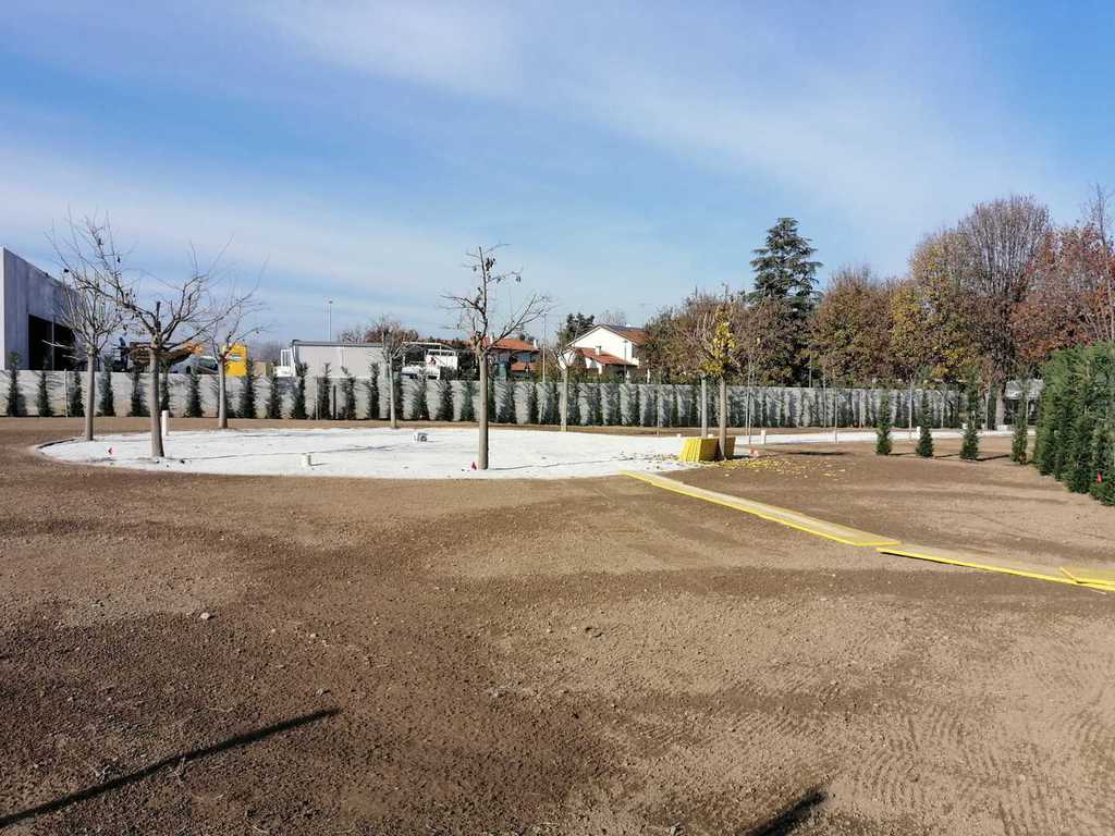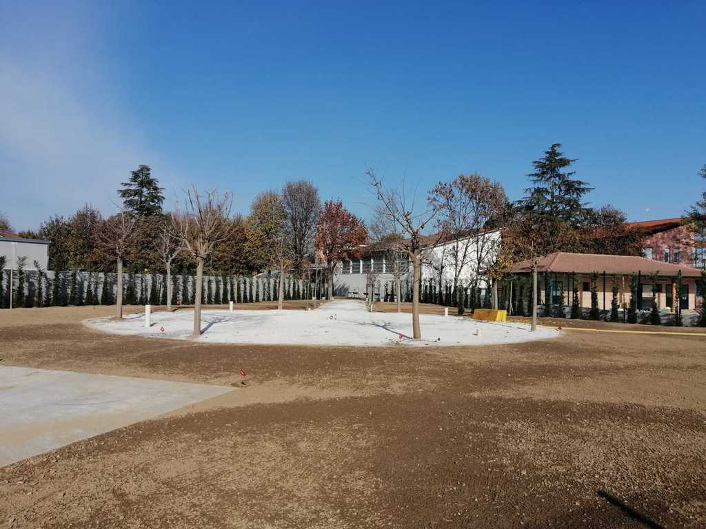 A confine della piazza circolare verranno piantate otto piante che oltre ad avere la funzione di cornice e delimitazione dell’aula didattica, serviranno ad ombreggiare lo spazio circolare nei mesi più caldi.
